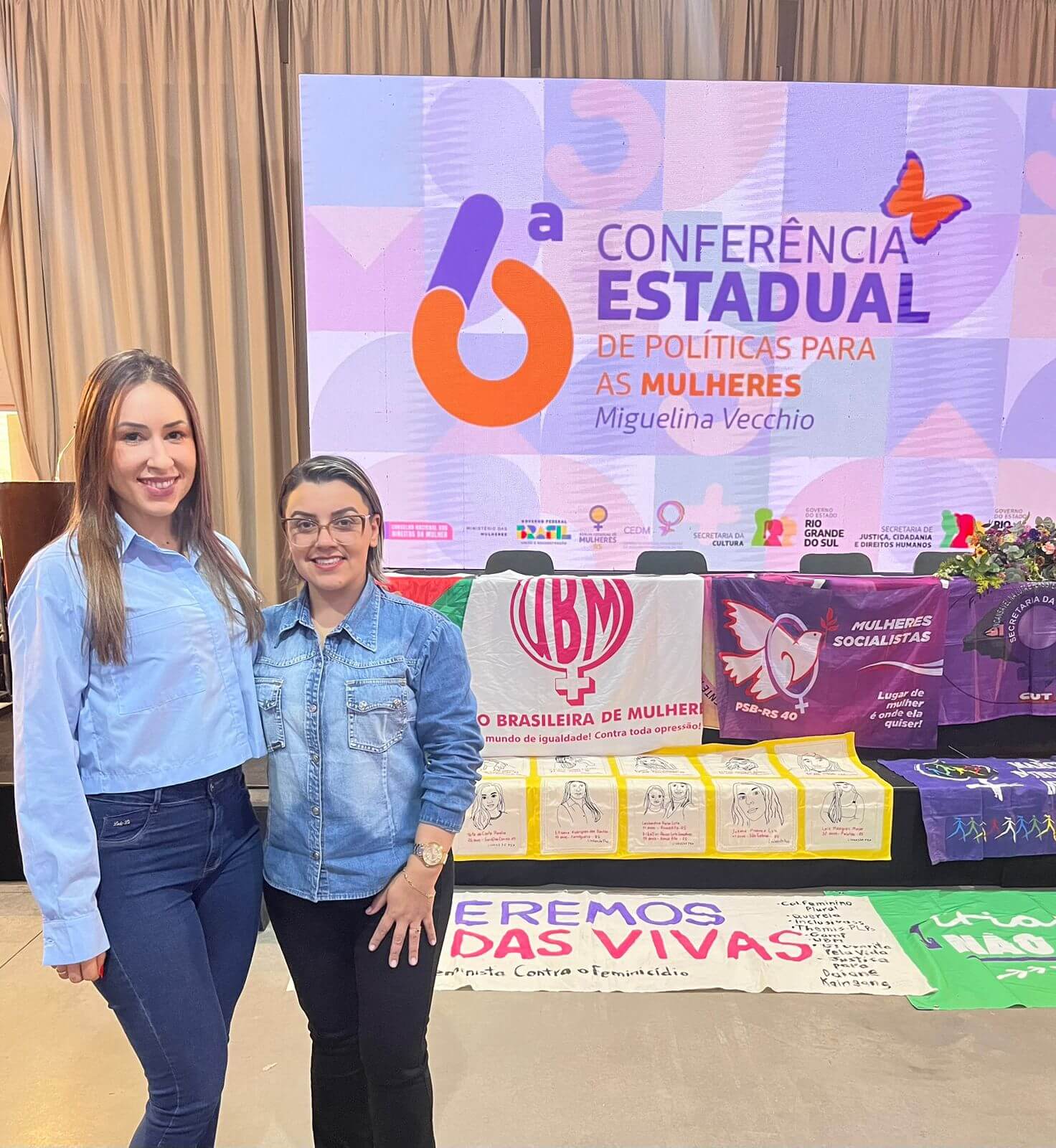 Nos dias 12, 13 e 14 de setembro, as Conselheiras do Conselho Municipal de Defesa e Direitos da Mulher, Thais Vargas Pereira (presidenta) e Maitê Bakalarczyk (vice-presidenta), estiveram em Porto Alegre, representando o Município de São Luiz Gonzaga, por meio do COMDEMULHER, na 6ª Conferência Estadual de Políticas para as Mulheres do Rio Grande do Sul. A conferência é organizada pelo Governo do Estado, por meio do Departamento de Políticas para as Mulheres da Secretaria de Justiça, Cidadania e Direitos Humanos (SJCDH) e do Conselho Estadual dos Direitos das Mulheres (CEDM), com apoio do Fórum Estadual de Mulheres do Rio Grande do Sul.