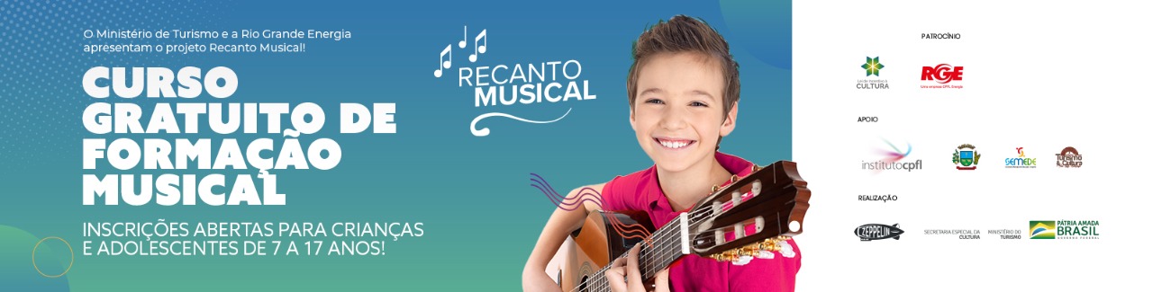 Iniciativa que visa incentivar novos talentos musicais em São Luiz Gonzaga, as aulas do projeto Recanto Musical iniciam nesta segunda-feira, 4 de julho. O projeto é desenvolvido pelo Ministério do Turismo e a Rio Grande Energia (RGE), com o apoio da Prefeitura de São Luiz Gonzaga, e oferecerá aos estudantes – de 7 a 17 anos – aulas gratuitas de violão no turno inverso às aulas.