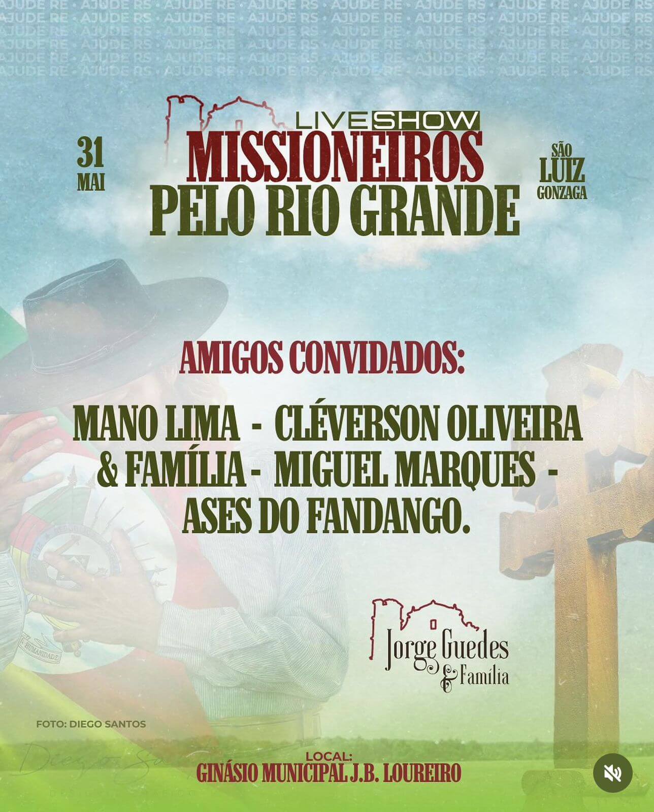 O Ginásio Municipal J. B. Loureiro sedia no próximo dia 31, partir das 19 horas, a Live Show Missioneiros pelo Rio Grande. Promovida pelo grupo Jorge Guedes e Família, a programação terá participação de grandes nomes da música tradicionalista regional e terá renda totalmente revertida para auxiliar a população de municípios atingidos pelas enchentes.