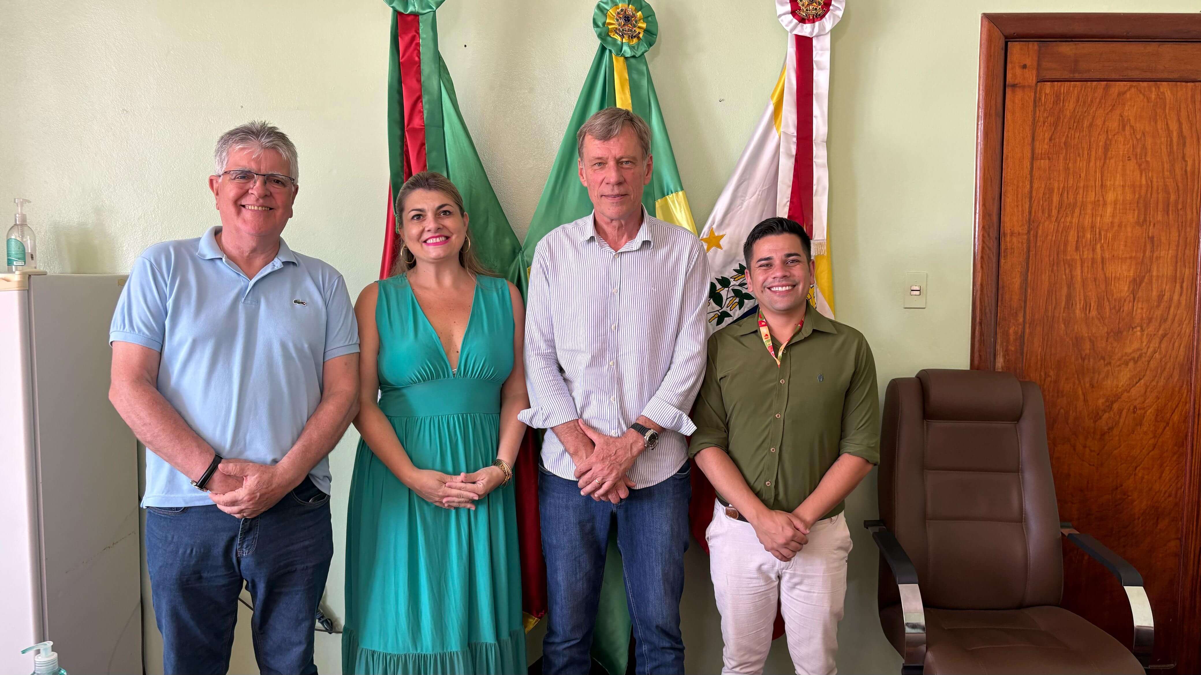 Na tarde desta terça-feira, 25 de fevereiro, o prefeito Piti Werle recebeu em seu gabinete a assessora de Desenvolvimento Econômico e coordenadora da Sala do Empreendedor, Daniele Pizzuti, e os servidores da Secretaria do Trabalho do RS responsáveis pelo programa Qualifica RS, João Alberto Terra do Amaral e Wellington Mascate.