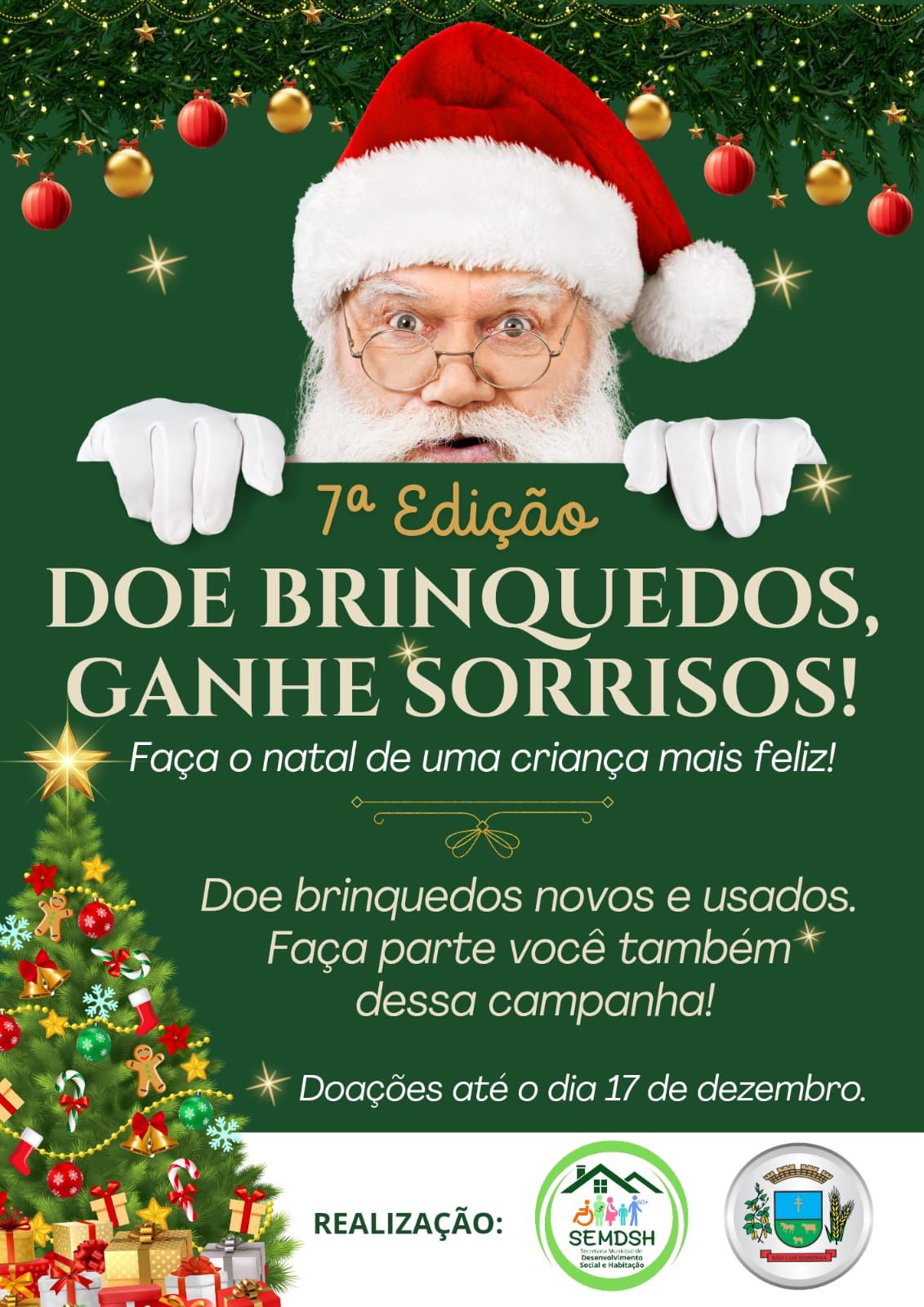 A Prefeitura de São Luiz Gonzaga, por meio da Secretaria Municipal de Desenvolvimento Social e Habitação, dá início à 7ª edição da campanha “Doe Brinquedos, Ganhe Sorrisos!”, uma ação que desde 2019 transforma o Natal das crianças dos bairros do município com solidariedade, emoção e esperança.